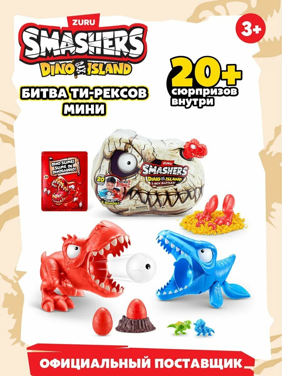 Вы готовы к доисторической битве? Тогда разбейте большой череп! Исследуйте удивительные находки и почувствуйте себя настоящим археологом. Копайтесь в песке и слизи, используя инструмент для раскопок, чтобы найти все части окаменелостей, а затем соберите их, чтобы оживить скелеты! Прикрепите к динозаврам оружие и доспехи для финальной битвы. Разбейте мини-яйца, чтобы отыскать коллекционных персонажей, поместите глазное яблоко в пасть рептилии, чтобы она заревела! В игре Smashers Dino Island T-Rex Battles вас ждёт более 50 сюрпризов. Разбивайте, стройте и сражайтесь!