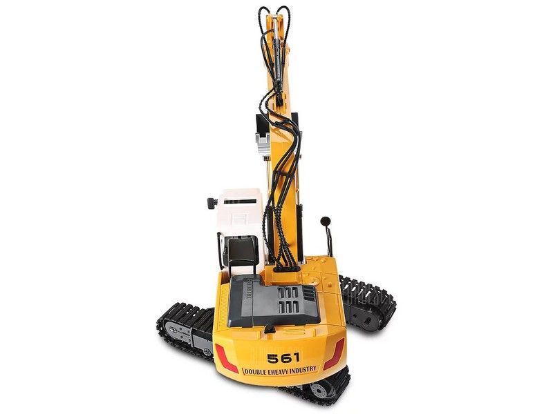 Важной особенностью этой игрушки является конструкция ковша. Принцип движения полностью повторяет настоящую технику. Ковш двигается вперёд и назад, перемещается вверх/вниз, может зачерпывать. Ковш полностью металлический, поэтому им можно копать различные типы грунта. Такая игрушка непременно станет центром любой игрушечной строительной площадки. Управляется модель экскаватора с пульта, на котором есть отдельные контроллеры движения самого экскаватора и отдельно ковша.
